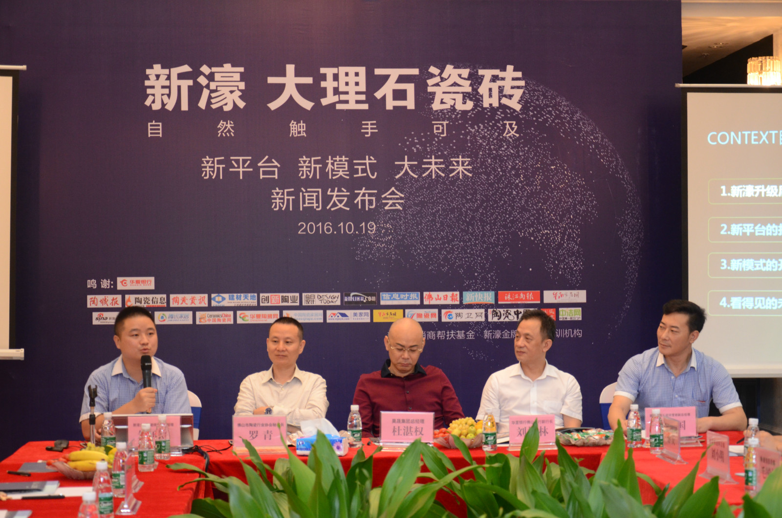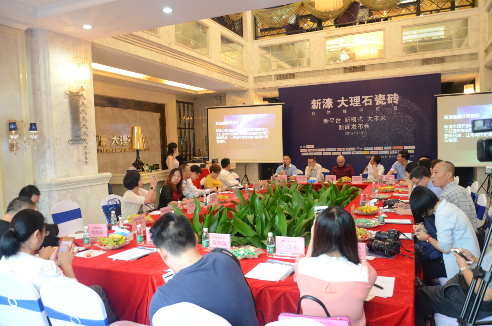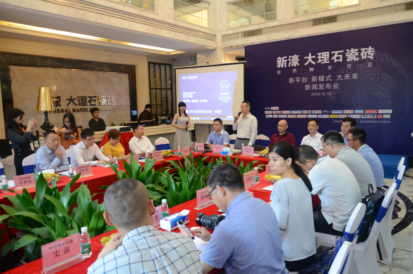 10月19日上午,新濠大理石瓷磚“新平臺(tái) 新模式 大未來”新聞發(fā)布會(huì)在佛山新濠展廳召開。華夏銀行佛山分行副行長(zhǎng)劉振林、金融部總經(jīng)理謝文斌,佛山陶瓷行業(yè)協(xié)會(huì)秘書長(zhǎng)羅青,昊晟集團(tuán)總經(jīng)理杜湛權(quán)、財(cái)務(wù)總經(jīng)理羅燕清,新濠大理石瓷磚品牌營(yíng)銷總經(jīng)理朱國(guó)亮、副總經(jīng)理柯寓國(guó),產(chǎn)品事業(yè)部策劃總監(jiān)孫慶,以及來自行業(yè)的近30家主流媒體記者等出席發(fā)布會(huì)。
