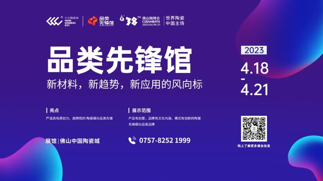 品類先鋒館位于中國陶瓷城三樓,總面積4300㎡,嚴(yán)選70多家在行業(yè)具有原創(chuàng)力、趨勢性的陶瓷細(xì)分品類“隱形冠軍”品牌,集中展示陶瓷細(xì)分領(lǐng)域的新材料、新趨勢、新應(yīng)用。