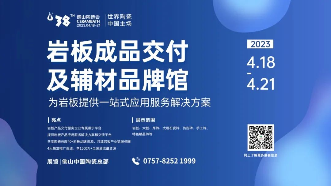 巖板成品交付及輔材品牌館是巖板、一體化、成品交付在陶瓷行業(yè)的專屬推廣平臺,由佛山陶博會組委會和TCT協(xié)會聯(lián)合傾力打造,展會期間同步發(fā)布2023巖板成品交付、一體化新技術(shù)、新產(chǎn)品、新工藝等流行趨勢。