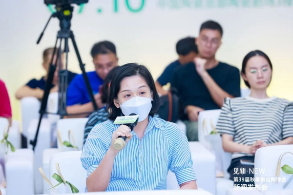 在正式開始媒體答疑環(huán)節(jié)前,佛山中陶城集團總裁助理、中國(佛山)陶瓷總部總經(jīng)理、中國(淄博)陶瓷總部總經(jīng)理湯潔明針對第39屆秋季佛山陶博會在展覽形象升級、展會內(nèi)容打造、展館定位差異化、華夏館展區(qū)規(guī)劃、陶瓷文化嘉年華五個板塊創(chuàng)新的初心進行了分享。