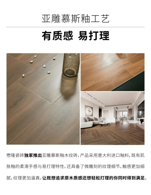 懋隆瓷磚成立于2008年,總部位于廣東佛山陶瓷總部基地,一直專注于高端木紋磚的生產(chǎn)與研發(fā)。于2008年首推原邊木紋磚,2013年首推1.8米大規(guī)格木紋條,風(fēng)靡業(yè)界。公司木紋磚品類豐富,規(guī)格齊全,工藝領(lǐng)先,是目前國(guó)內(nèi)專業(yè)的木紋磚生產(chǎn)和銷售企業(yè)。