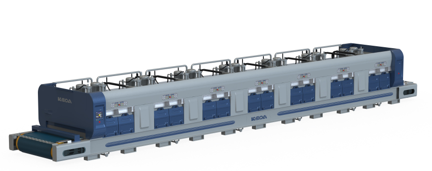 窯爐采用的是科達(dá)極光系列高效節(jié)能寬體輥道窯(YG3.1m/466.2M-Q),應(yīng)用了助燃風(fēng)加熱系統(tǒng)、助燃分組精準(zhǔn)控制系統(tǒng)、窯體綜合保溫升級(jí)系統(tǒng)、高效節(jié)能窯爐噴槍,輔以科達(dá)V3.0 窯爐智能控制系統(tǒng),為該線樹(shù)立在產(chǎn)量、能耗、穩(wěn)定性及智能控制等方面優(yōu)勢(shì)提供了充足保障。