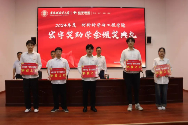5月24日上午,景德鎮(zhèn)陶瓷大學(xué)材料科學(xué)與工程學(xué)院2024年度“宏宇獎助學(xué)金”頒獎典禮在陶大湘湖校區(qū)隆重舉行。景德鎮(zhèn)陶瓷大學(xué)材料學(xué)院黨委書記蔣方樂、院長汪永清、黨委副書記計鎮(zhèn)華等陶大領(lǐng)導(dǎo)以及材料學(xué)院200多名師生代表參加了頒獎典禮。宏宇集團董事長助理葉勁立、企劃公關(guān)部副總監(jiān)姚區(qū)代表企業(yè)參加典禮。