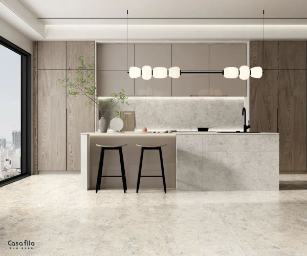 Ceppo di Gre是一種多孔、自然發(fā)生的灰藍色優(yōu)質(zhì)云質(zhì)角礫巖,通過細;|(zhì)粘合在一起,由大塊和較小的生動藍灰色石頭組成,與較淺和較暖的灰色形成鮮明對比,從淺色調(diào)到深色調(diào),碎屑的形態(tài)和大小多變且分布不規(guī)則,每塊石板都是獨一無二的,自帶一種復(fù)古與工業(yè)感的美麗,散發(fā)著優(yōu)雅的迷人氣質(zhì)。