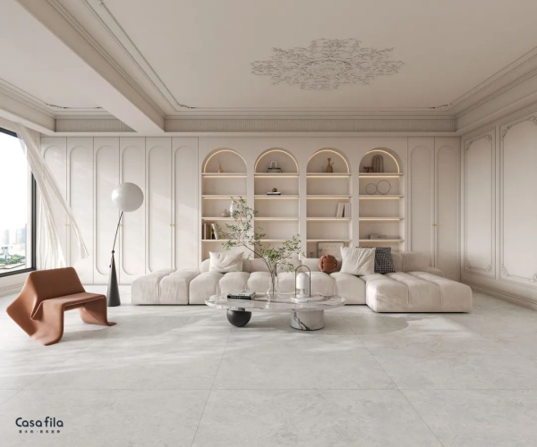 配合浪花拍打在白色沙灘上的花紋,感受清涼的海風(fēng)帶來的遠洋的呼喚,雕琢出空間的別具特色。純白潔凈的肌底與層層涌動的海浪,如微風(fēng)拂過泛起絲絲溫柔,悠靜綿長,灰白色石紋如珍珠群星般遍布其中,訴說著自然海岸線變遷的歲月。